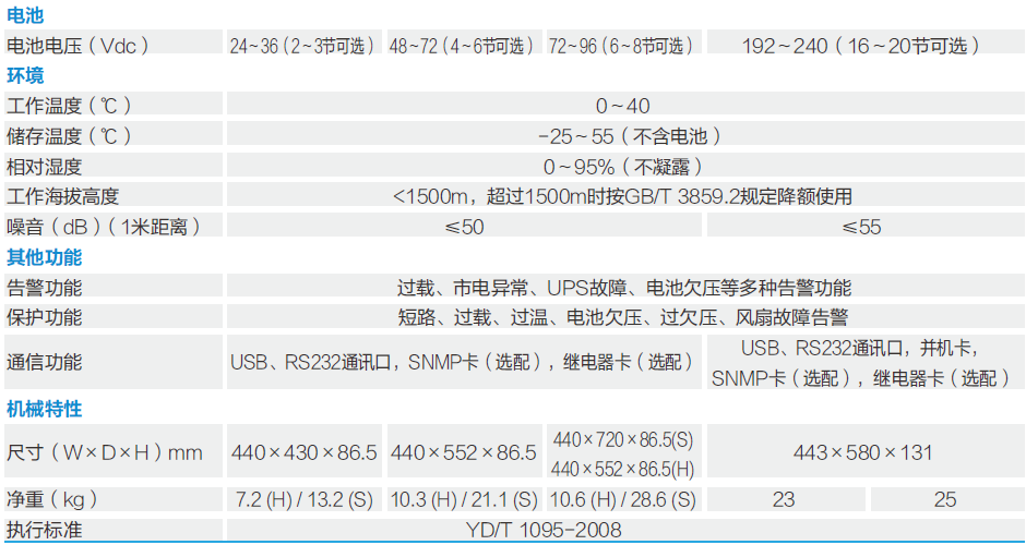 输出过载、输出短路,逆变器过温、电池欠压预警和电池过充电保护功能静态电子旁路开关